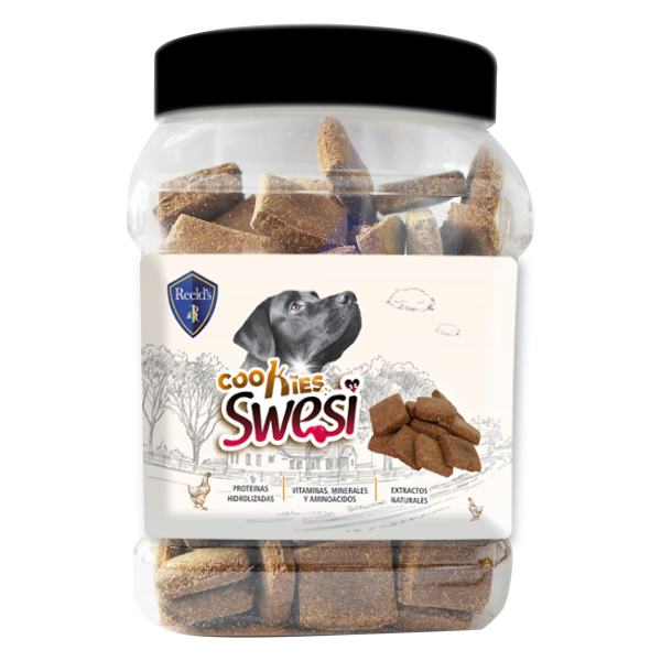 Harina de arroz, pollo deshidratado, hidrolizado de hígado de aves y/o cerdo, arroz de cervecería, trigo, harina integral, glicerina, leche en polvo, jarabe de glucosa, sorbitol, zeolita, grasa de cerdo, propionato de calcio, ácido sórbico, levadura de cerveza, goma xanta, L-lisina, vitaminas (A, D3, E, tiamina B1, riboflavina B2, piridoxina B6, B12, niacina, ácido pantoténico, ácido fólico, biotina, C), minerales (sulfato ferroso, sulfato de cobre, sulfato de manganeso, óxido de zinc, yodato de calcio, selenito sódico), L-taurina, extracto de canela, extracto de romero y ácido cítrico.