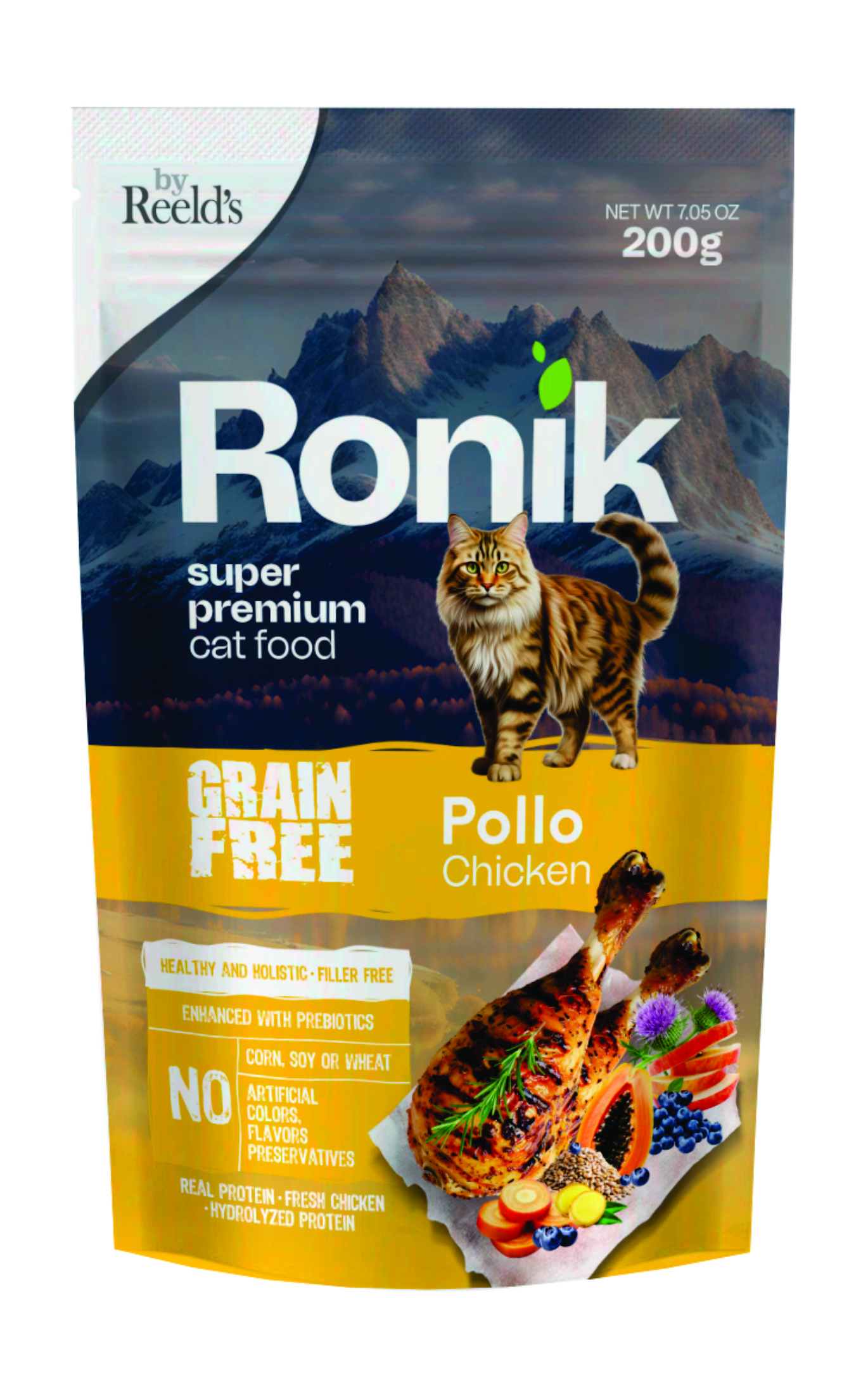 Pollo Fresco Hidrolizado (2), Hidrolizado de Pollo (3), Agua, Pollo Deshidratado Hidrolizado (2), Grasa de Cerdo, Extracto de Levadura, Polidextrosa, Zeolita, Hemoglobina Hidrolizada (2), Semillas de Lino, Plasma Animal Hidrolizado (2), Fosfato Bicalcico, L-Lisina, Cloruro de Colina, Cloruro de Potasio, Manzana Fresca, Bisulfato Sodio, Papaya Fresca, Arándano Fresco, Inulina, Ácido Ascórbico Vitamina C, Óxido de Zinc, Carbonato de Potasio, L-Carnitina, Extracto Cardo Mariano (Silybum marianum), Extracto Jengibre (Zingiber officinale), Extracto de Romero (Salvia rosmarinus), Vitamina A 1680,50 UI/kg, Vitamina D 168,05 UI/kg, Vitamina E 13,52 UI/kg, Vitamina B1 Tiamina 1,68 mg/kg, Vitamina B2 Riboflavina 1,34 mg/kg, Vitamina B5 Ácido Pantoténico 1,68 mg/kg, Vitamina B3 Niacina 20,17 mg/kg, Vitamina B6 Piridoxina 1,34 mg/kg, Vitamina B9 Ácido Fólico 0,27 mg/kg, Vitamina B7 Biotina 0,024 mg/kg, Vitamina B12 Cianocobalamina 0,007 mg/kg, Colina 806,64 mg/kg, Magnesio 0,013 %, Hierro 26,89 mg/kg, Cobre 1,68 mg/kg, Manganeso 2,52 mg/kg, Zinc