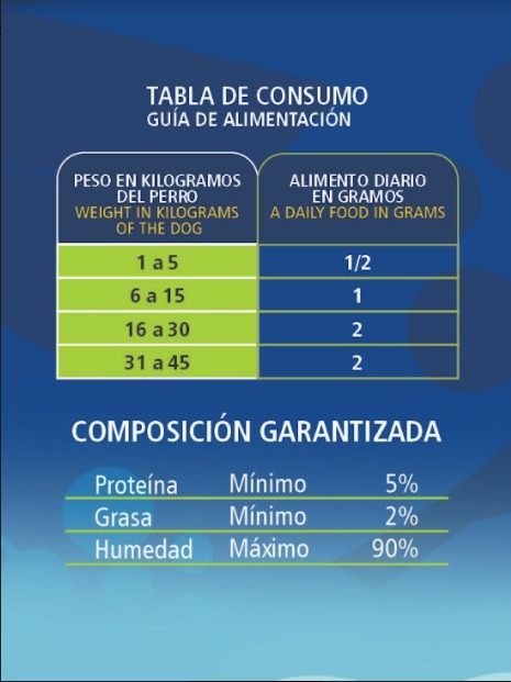 Agua, proteína hidrolizada de pollo, arroz de cervecería, carne de cordero, almidón de maíz, almidón de yuca, grasa de cerdo, hemoglobina en polvo, polidextrosa, extracto de cardo mariano, vitaminas (C,E,A,D3,Tiamina, Riboflavina, Piridoxina, B12), minerales (Sulfato ferroso, sulfato de cobre, sulfato de manganeso, óxido de zing, Yodato de calcio, Selenito de sodio), L- taurina.