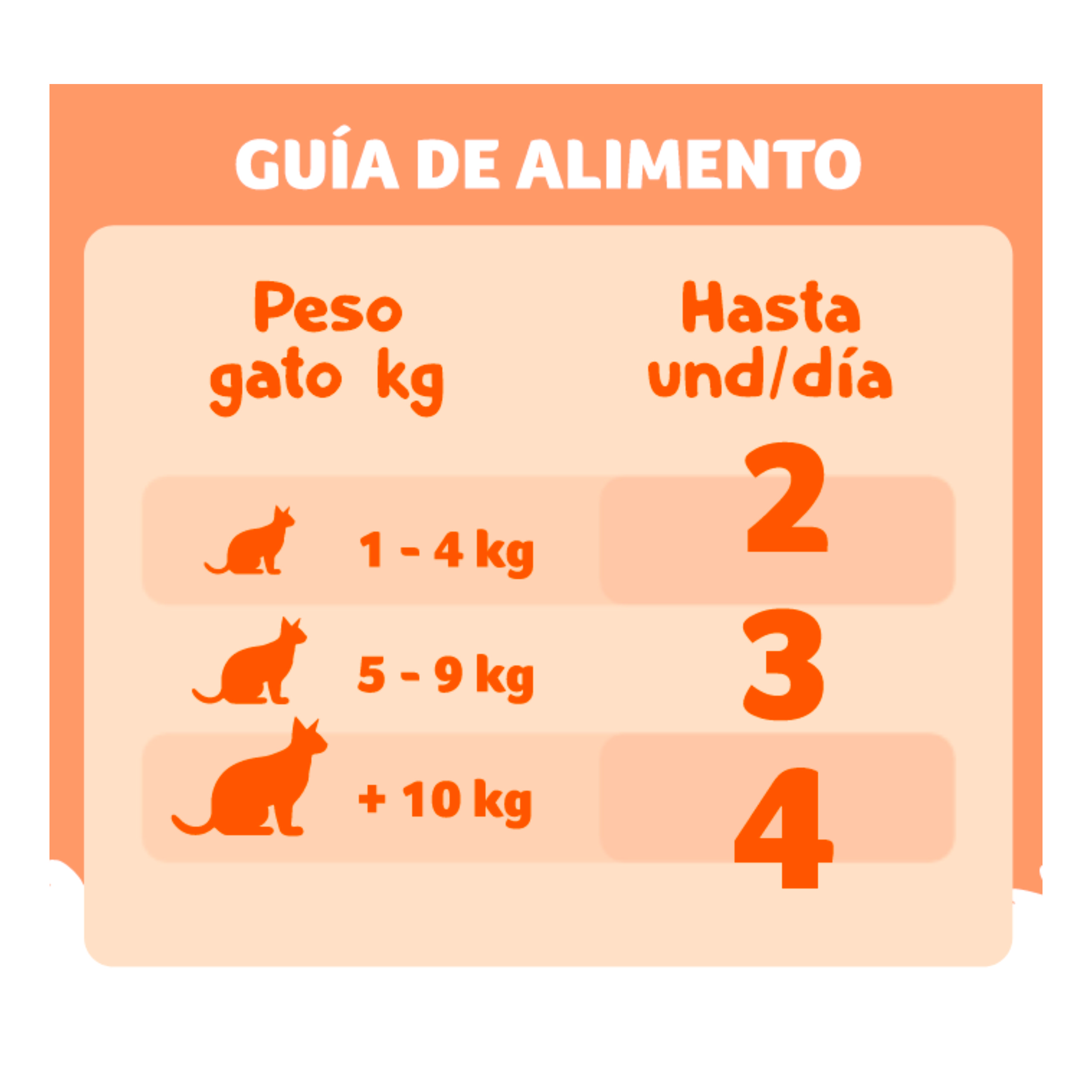No exceder la cantidad recomendada según el peso de tu gato.